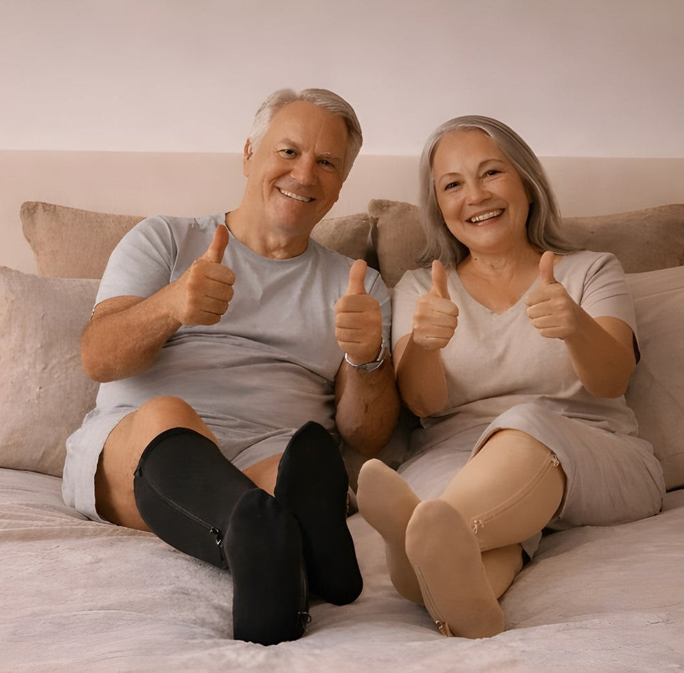 Dank ihrer gezielten Kompression fördern sie den venösen Rückfluss und sorgen täglich für spürbare Erleichterung.